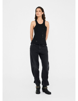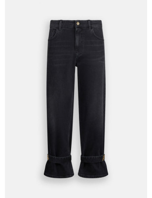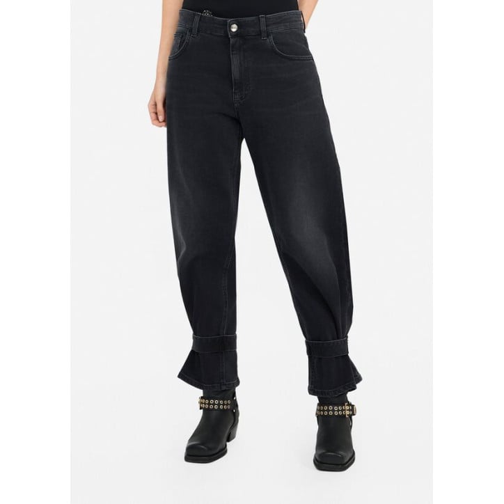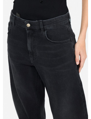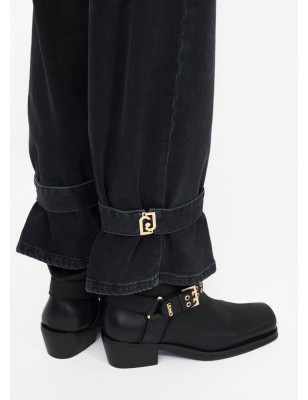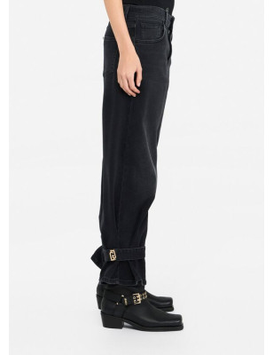 Jeans cropped carrot fit. Realizzati in denim di cotone stretch. Lavaggio used. Vita alta. Modello cinque tasche. Logo in metallo sul retro. Cinturini con logo LJ in metallo al fondo. Chiusura con bottone e zip coperta. Composizione: Tessuto principale: 99% Cotone, 1% Elastan| Fodera principale: 65% Poliestere, 35% Cotone LAVAGGIO: Lavare delicatamente max 30°C | Non trattare con cloro | Non Lavare a secco | Lavare a rovescio | Non strofinare durante il lavaggio | Lavare separatamente | Lavare con detersivo liquido ASCIUGATURA: Non usare Asciugatrice STIRAGGIO: Non stirare | Stirare a temperatura massima 110 °C | Non stirare le decorazioni.
