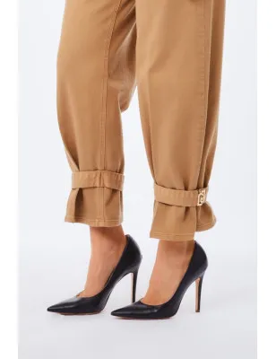 Jeans cropped carrot fit. Realizzati in denim di cotone stretch. Lavaggio used. Vita alta. Modello cinque tasche. Logo in metallo sul retro. Cinturini con logo LJ in metallo al fondo. Chiusura con bottone e zip coperta. Composizione: Tessuto principale: 99% Cotone, 1% Elastan| Fodera principale: 65% Poliestere, 35% Cotone LAVAGGIO: Lavare delicatamente max 30°C | Non trattare con cloro | Non Lavare a secco | Lavare a rovescio | Non strofinare durante il lavaggio | Lavare separatamente | Lavare con detersivo liquido ASCIUGATURA: Non usare Asciugatrice STIRAGGIO: Non stirare | Stirare a temperatura massima 110 °C | Non stirare le decorazioni.