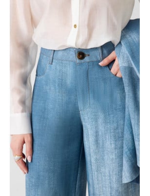 Pantaloni regolari. Gamba dritta. Costruzione a 5 tasche. Vita alta. Vestibilità rilassata. Vita elasticizzata. Chiusura con bottone. SHELL (tessuto principale): 100% Viscosa / Rayon ETICHETTA DI LAVAGGIO: Lavare max 30°C – Processo molto delicato;