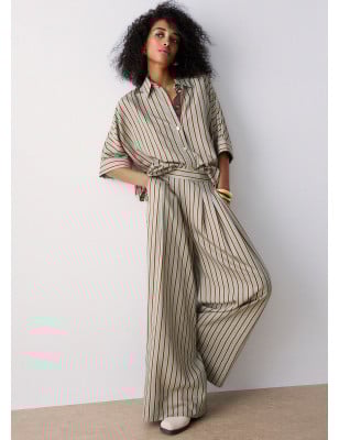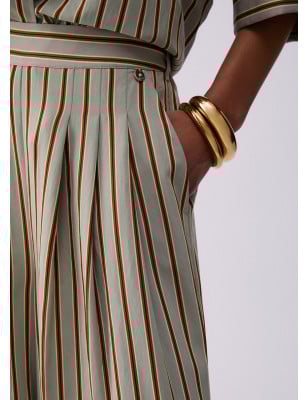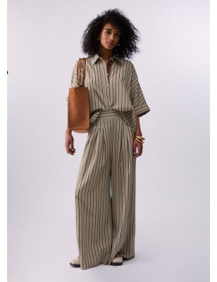 Un wide leg che risolve i look estivi. Realizzati rayon leggero, questi pantaloni hanno una vestibilità ampia e confortevole. La vita elasticizzata li rende perfetti per viaggi, weekend e giornate in città: abbinali a top, camicie annodata o t-shirt per un total look fresco e contemporaneo. Pantaloni wide leg in rayon di viscosa. Fantasia rigata. Cintone con inserto elastico posteriore. Comode tasche. Design ampio e fluido.