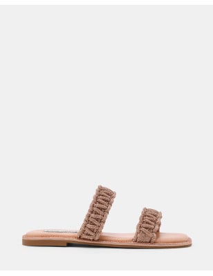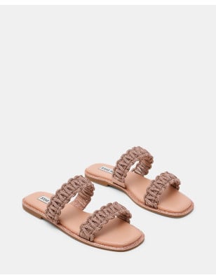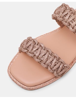 Brilla da ogni angolazione con NYSSA. Questo elegante sandalo punta su un luccichio discreto, con dettagli in strass lungo i bordi e doppi cinturini che catturano lo sguardo. Perfetto per aggiungere un tocco di glamour a qualsiasi look estivo, sia di giorno che di sera. Altezza tacco: 0,5 cm Materiale: Tessuto metallizzato con strass abbinati e TPU trasparente Chiusura: Slip-on.