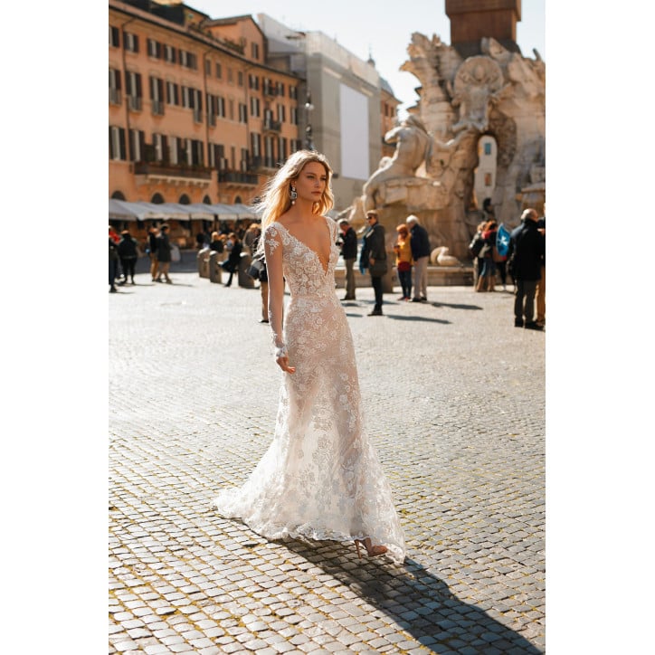 La collezione di abiti da sposa Berta esalta la silhouette della sposa, tra eleganza e sensualità, scollature audaci e schiene scoperte.