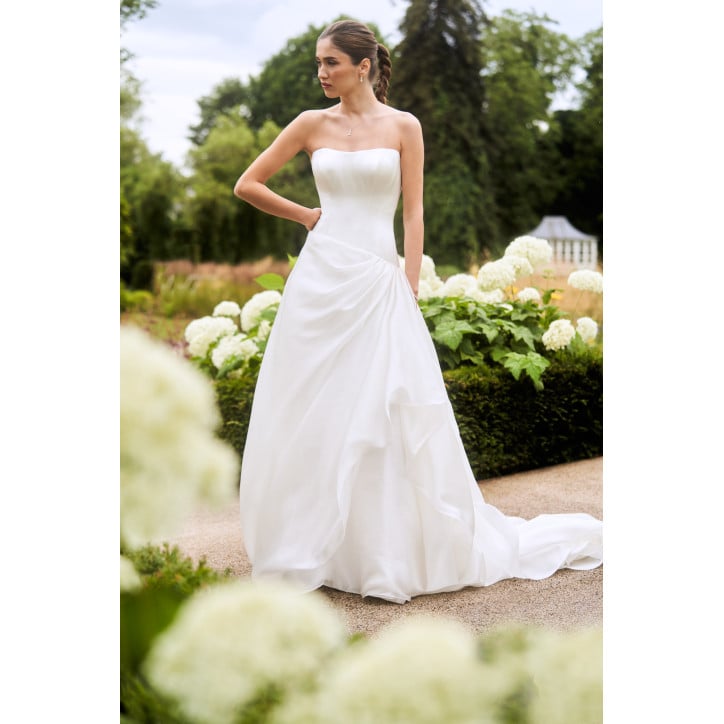 Scopri i decadenti abiti da sposa di Caroline Castigliano in lussuosi tessuti e in forme che valorizzano la figura per spose sofisticate.