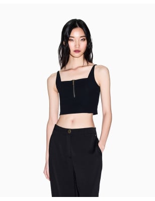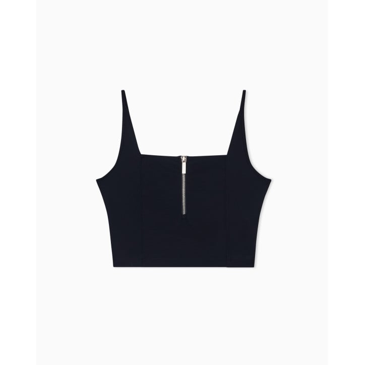 Un'ode alla silhouette moderna, questo tank top definisce il corpo con eleganza discreta. Il tessuto ottomano in nylon stretch crea un effetto scultoreo, sottolineando la figura con comfort e stile. Perfetto sotto una giacca sartoriale o indossato da solo per un look minimalista e sofisticato, è un capo versatile che eleva qualsiasi outfit. Composizione Tessuto: 74% poliammide, 26% elastan Dettagli Tessuto ottoman in nylon stretch Scollo rotondo Vestibilità aderente Zip sul davanti.