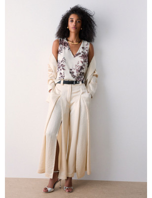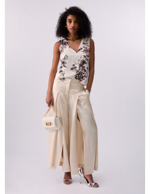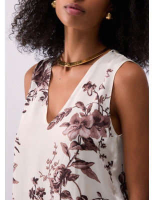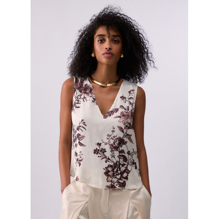 Top in raso di viscosa. Stampa floreale. Scollo a V. Composizione: Tessuto principale: 100% Viscosa LAVAGGIO: Non lavare in acqua | Non trattare con cloro | Lavare delicatamente a secco con tetracloroetilene | Lavare a rovescio | ASCIUGATURA: Non usare Asciugatrice | STIRAGGIO: Non stirare | Stirare a temperatura massima 110 °C | Non stirare le decorazioni.