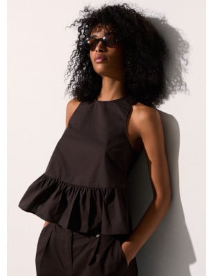Top in popeline Filati in puro cotone Girocollo Chiusura a fiocco posteriore Taglio peplum con volant sul fondo. Composizione: Tessuto principale: 100% Cotone LAVAGGIO: Lavare delicatamente max 30°C | Non trattare con cloro | Lavare delicatamente a secco con tetracloroetilene | Lavare a rovescio | ASCIUGATURA: Non usare Asciugatrice | STIRAGGIO: Non stirare | Stirare a temperatura massima 110 °C | Non stirare le decorazioni.