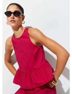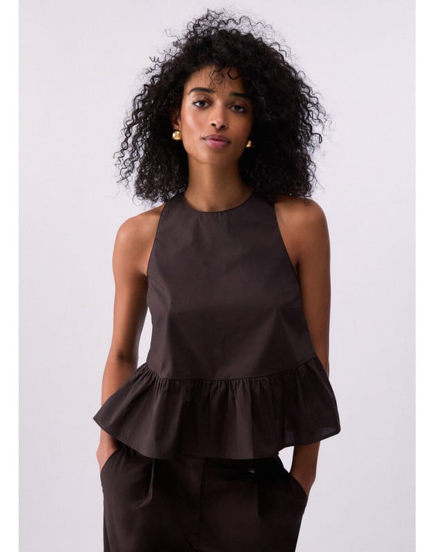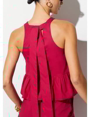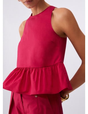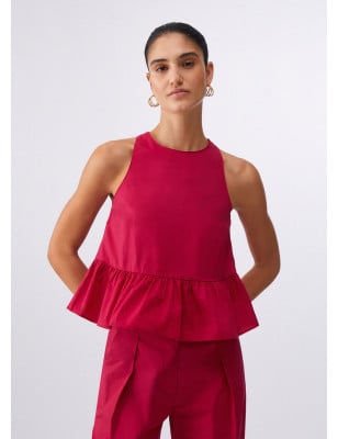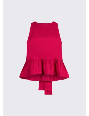 Top in popeline Filati in puro cotone Girocollo Chiusura a fiocco posteriore Taglio peplum con volant sul fondo. Composizione: Tessuto principale: 100% Cotone LAVAGGIO: Lavare delicatamente max 30°C | Non trattare con cloro | Lavare delicatamente a secco con tetracloroetilene | Lavare a rovescio | ASCIUGATURA: Non usare Asciugatrice | STIRAGGIO: Non stirare | Stirare a temperatura massima 110 °C | Non stirare le decorazioni.